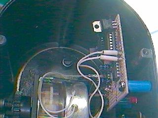 Normalerweise läuft der Frequenzwandler jetzt. Vor dem Einbau ins Motorgehäuse sollte aber doch noch ein Probelauf mit Motor durchgeführt werden, dazu werden die Motordrähte an der vorhandenen LED-Platine ausgelötet oder abgeknipst (letzteres geht einfacher, da die Drähtchen erdbebensicher eingelötet sind). Die losen Motordrähte werden nun an X3 und X4 angelötet, man kann auch so kleine Stecker für 1mm Pins verwenden. Nun sollte das vertraute Rumpeln des TAL-Motörchen zu hören sein, fast so wie eine kleine Betonmischmaschine, nur leiser und vor allen ganz ohne Netzanschluss!