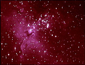 Fotograf: Armin Quante M16 - Adler Nebel / M17 - Omega Nebel (Bildauschnitt) Objektiv: Tokina 3.5/220mm, Blende 4 Kamera: Edixa mat-reflex b Film: Dia, Kodak Elitechrome 200, selbst entwickelt Belichtungszeit: ca. 5 Minuten Ort: Stumpertenrod (ITV) Datum: 26.5.2001 Bildnachbearbeitung: Rolf Wolniewicz Bemerkung: Die Kamera war Kallepack auf dem TAL2M montiert. Nachgeführt wurde mit EZB und 25mm Kellner mit Fadenkreuz.
