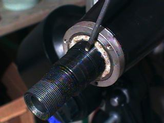 Madenschrauben etwas rausdrehen und dann den Achsstutzen im Uhrzeigersinn