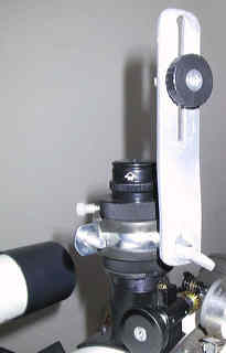 Vor einiger Zeit legte ich mir eine Canon PS 10 Digitalkamera mit 2,1 Megapixel zu. Eigentlich war sie nur für 'weltliche' Fotos vorgesehen. Da dachte ich mir, warum nicht auch mal am Teleskop probieren. Also: Rohrschelle um den Okularauszug, Flacheisen mit Langloch (um sich den verschiedenen Okularlängen anzupassen) drangeschraubt und an dem Flacheisen mit einer Fotoschraube die Kamera befestigt. Mit dieser einfachen Konstruktion geht die Kamera während des Scharfstellens mit. Die Kamera selbst hat ja kein Gewinde am Objektiv. Ich war ganz schön überrascht, wie einfach man damit Bilder mit hoher Qualität erziehen kann. Bilder, die ich mit meiner Spiegelreflex auch nach viel herumprobieren nicht zustandebrachte. Die Fokussierung ist sehr einfach, weil man das Bild am LCD-Monitor ständig verfolgen kann. Der frißt allerdings sehr viel Strom, ein voller Akku ist im Winter oft schon nach einer halben Stunde am Ende. Ein Ersatzakku ist deshalb nicht zu verachten.