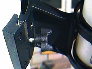 Nun habe ich eine endgültige Lösung, die ich hier vorstellen möchte. Die Sicherungsschraube wird ganz ausgemustert. Der Sockel der Sucherhalterung wird auf einer Seite mit einem 3,5mm Bohrer durchbohrt, dann wird in diese Bohrung ein M4-Gewinde eingeschnitten. Man benötigt nun eine M4-Flügelschraube und dreht diese von oben ein. Nach Einschieben der Sucherhalterung in die Schwalbenschwanzführung am Tubus, wird diese Flügelschraube leicht angezogen. Jetzt sitzt der Sucher bombemfest. Durch anziehen der Schraube wird nicht nur ein Verrutschen des Suchers verhindert, die Schwalbenschwanzführungen werden dabei so eingespannt, daß der Sucher nicht mehr wackelt. Beim Bohren des Loches ist nur darauf zu achten, daß die Schraube auf der Schwalbenschwanzführung des Tubus klemmt und nicht auf dem Tubus. Gebohrt wird die Sucherhalterung am besten von unten.